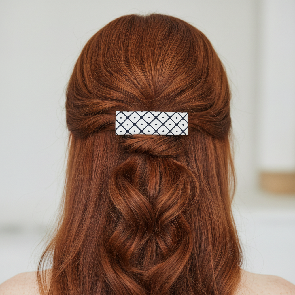 This 3.25 inch French Hair Clip is elegantly designed with fabric and a rectangle shape. Its durable construction ensures secure hold without damaging your hair. Perfect for adding a touch of sophistication to any hairstyle. This clip is also lined with leather for extra comfort.