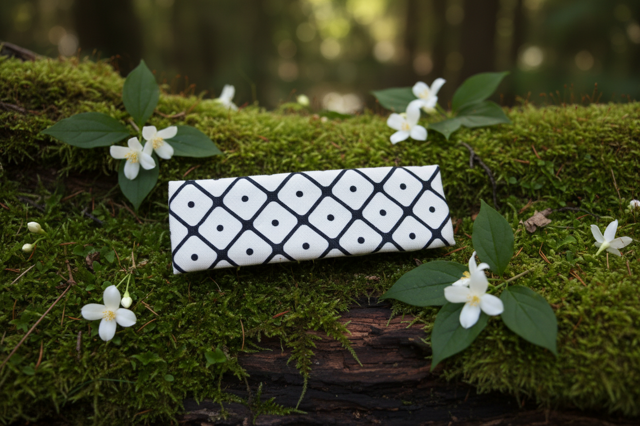 Navy Dots Green French Hair Clip, Fabric Clip, 3.25 Inch, Rectangle, Leather Lined Barrette