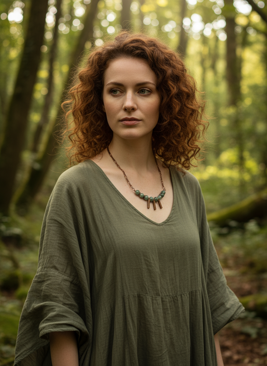Created with green 6mm burma jade beads, antique copper figaro chain with magnetic clasp.