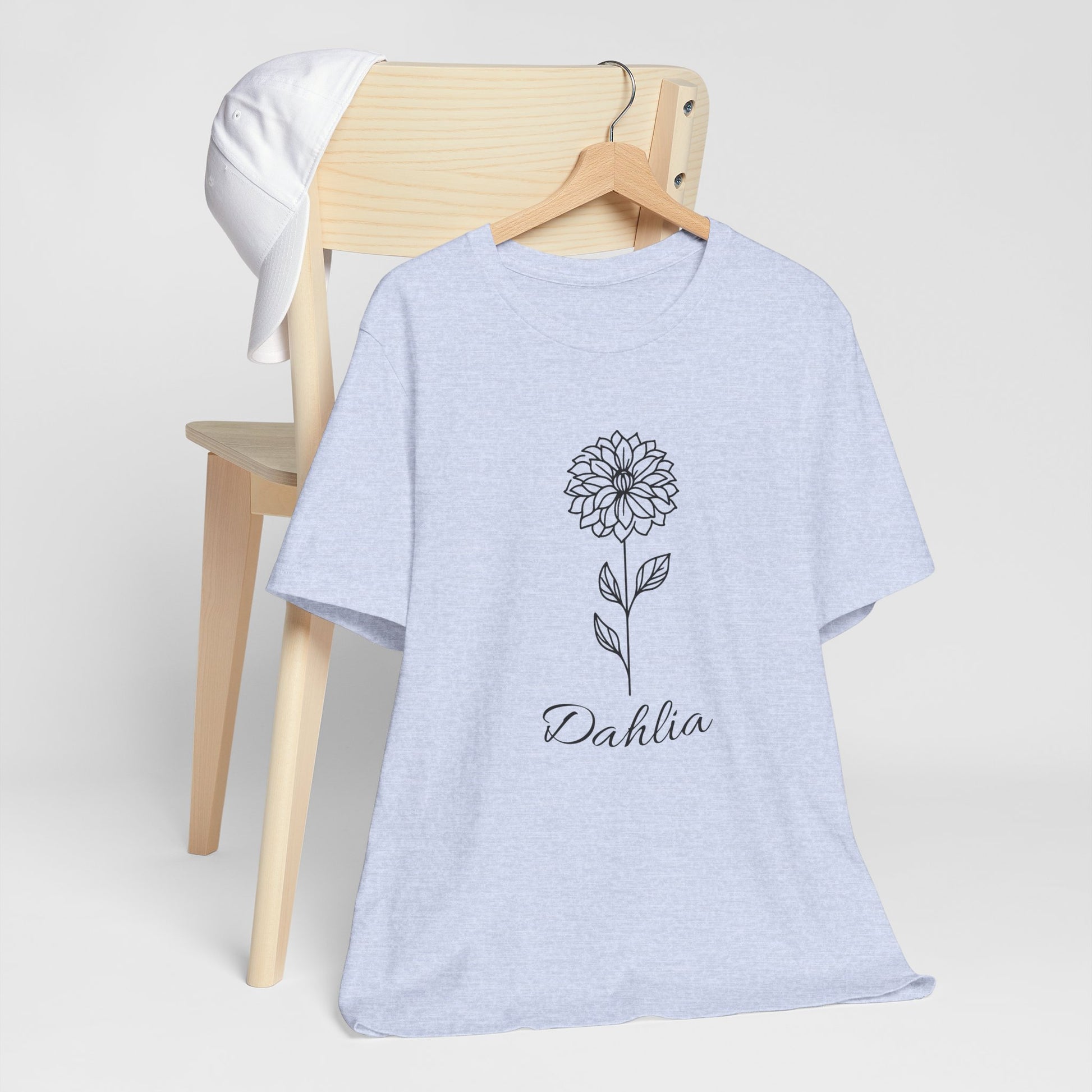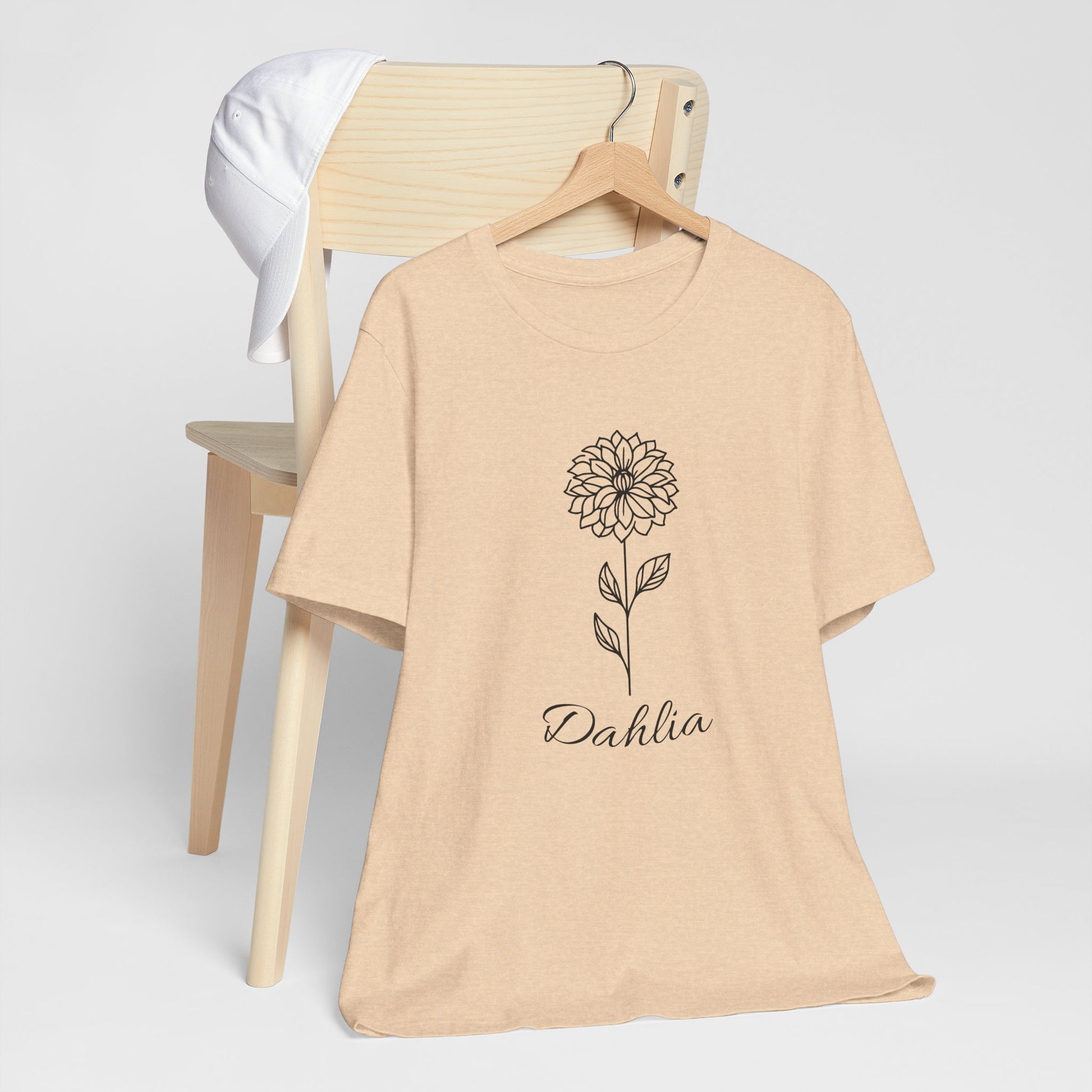 Floral Graphic Tee: Hand-Drawn Dahlia T-Shirt, Nature Lover Gift, Casual Wear, Spring Fashion, Botanical Art Style