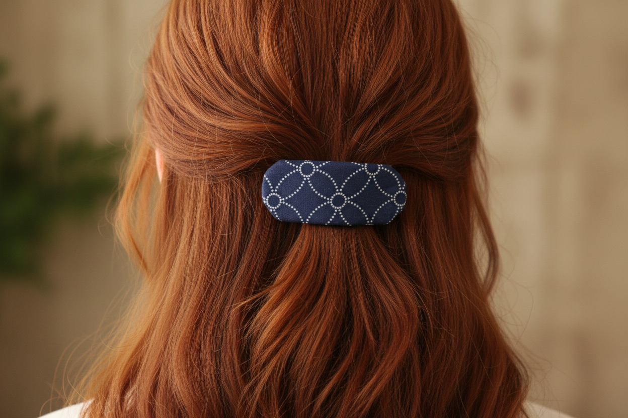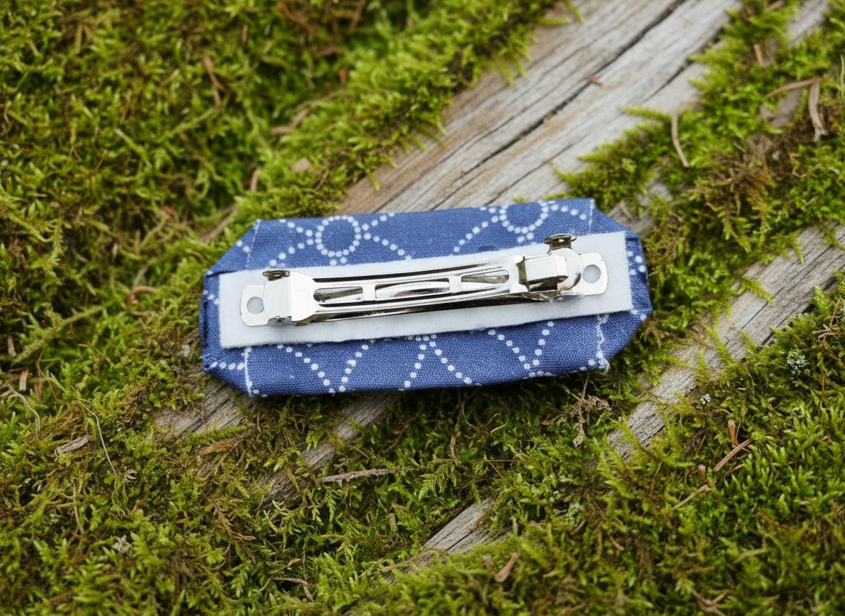 Flower Dots French Hair Clip, Fabric Clip, 3 Inch, Oval