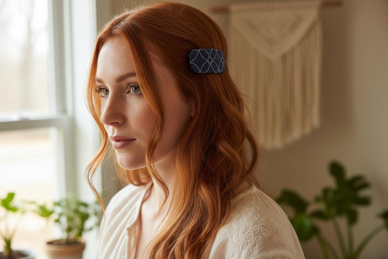 Gorgeous handmade fabric french style hair clip. Measures 3" in length.