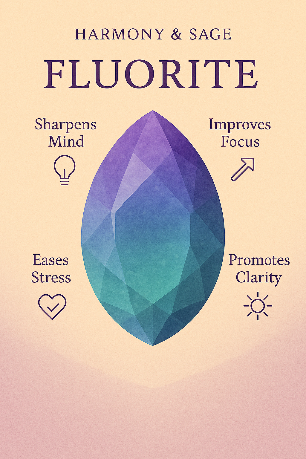 Fluorite enhances mental clarity, aids in decision-making, and promotes clear communication.