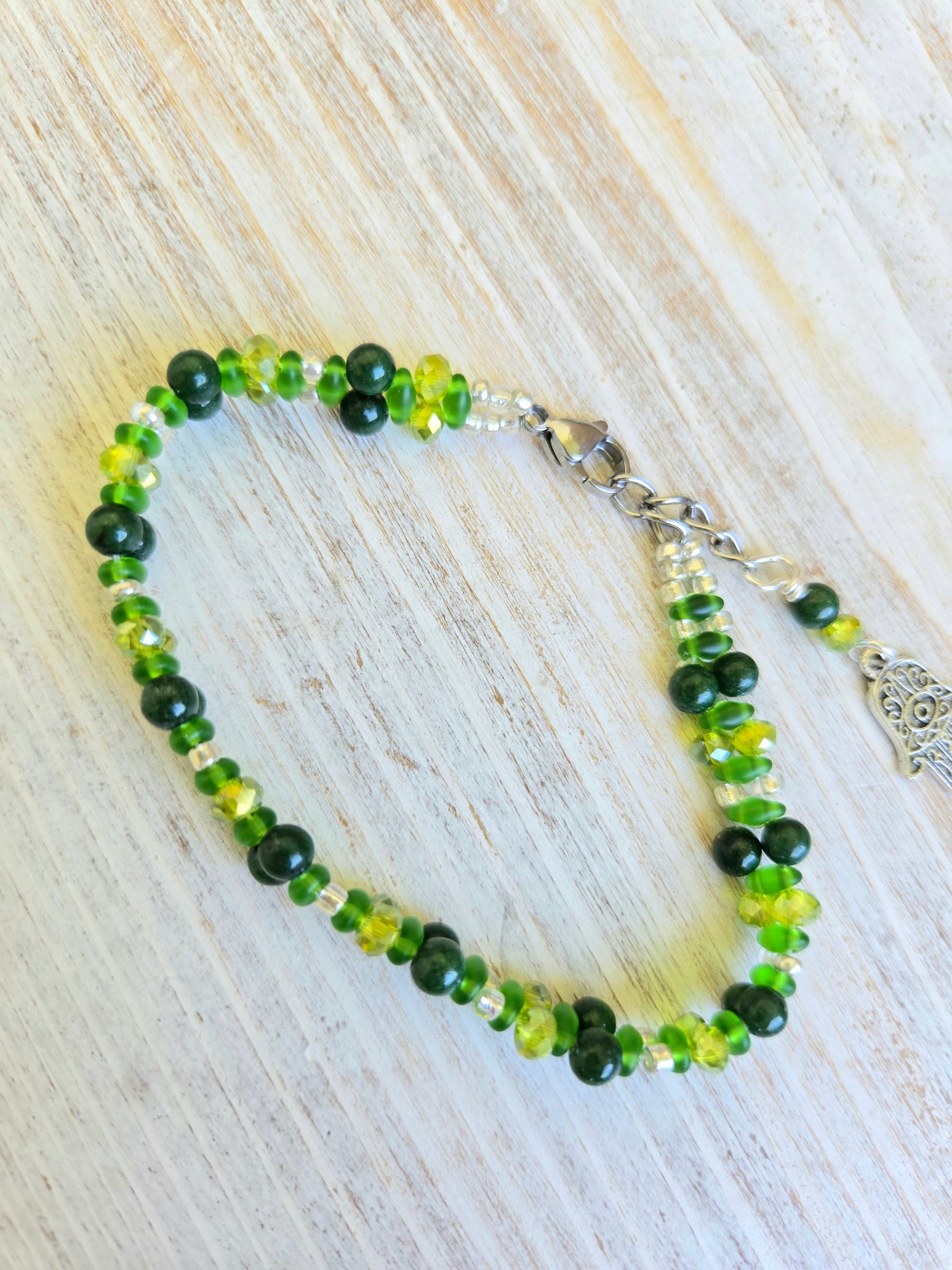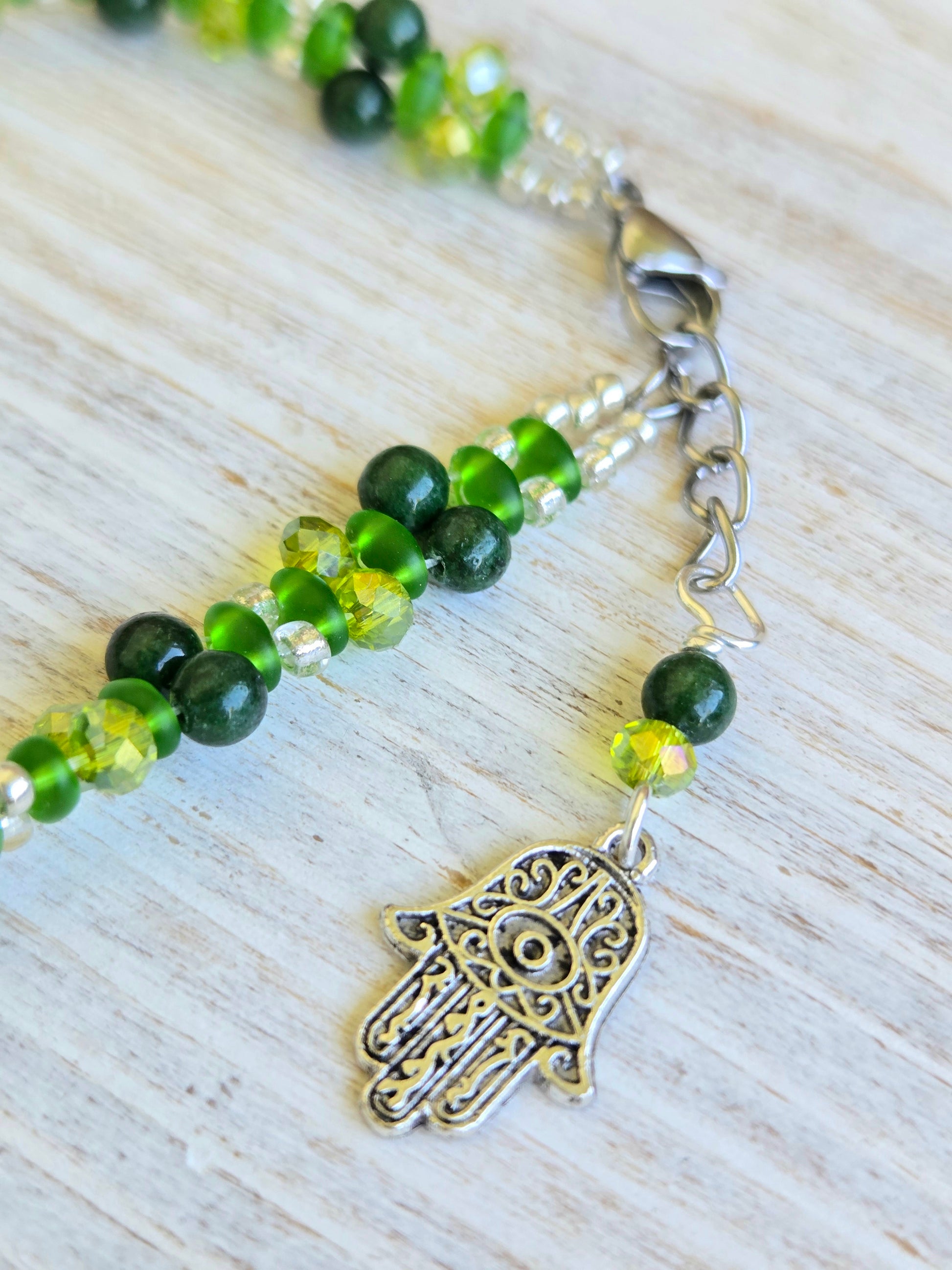 Green Agate Hamsa Handbeaded Healing Bracelet