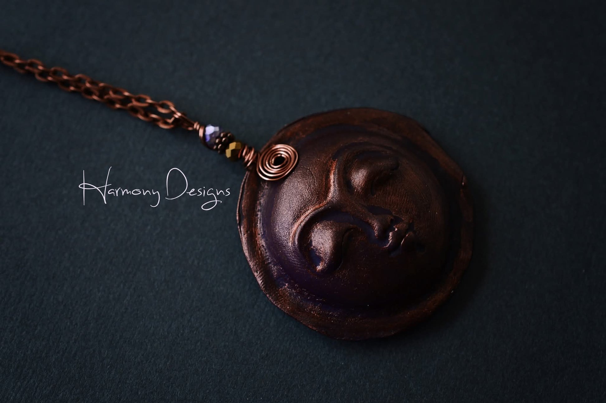 Polymer Clay Moon Goddess Copper Necklace