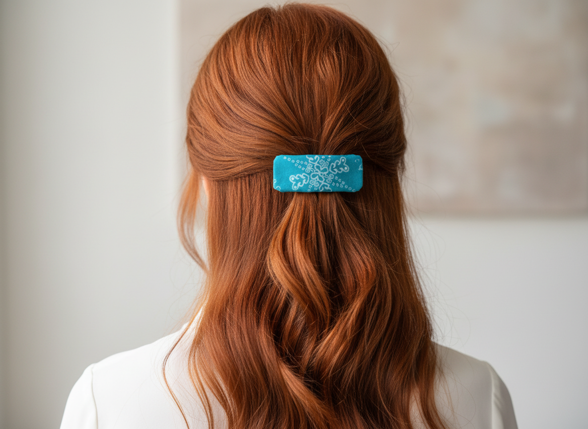 Snowflake French Fabric Hair Clip, Winter Hair Clip, 2.5 Inch, Rectangle